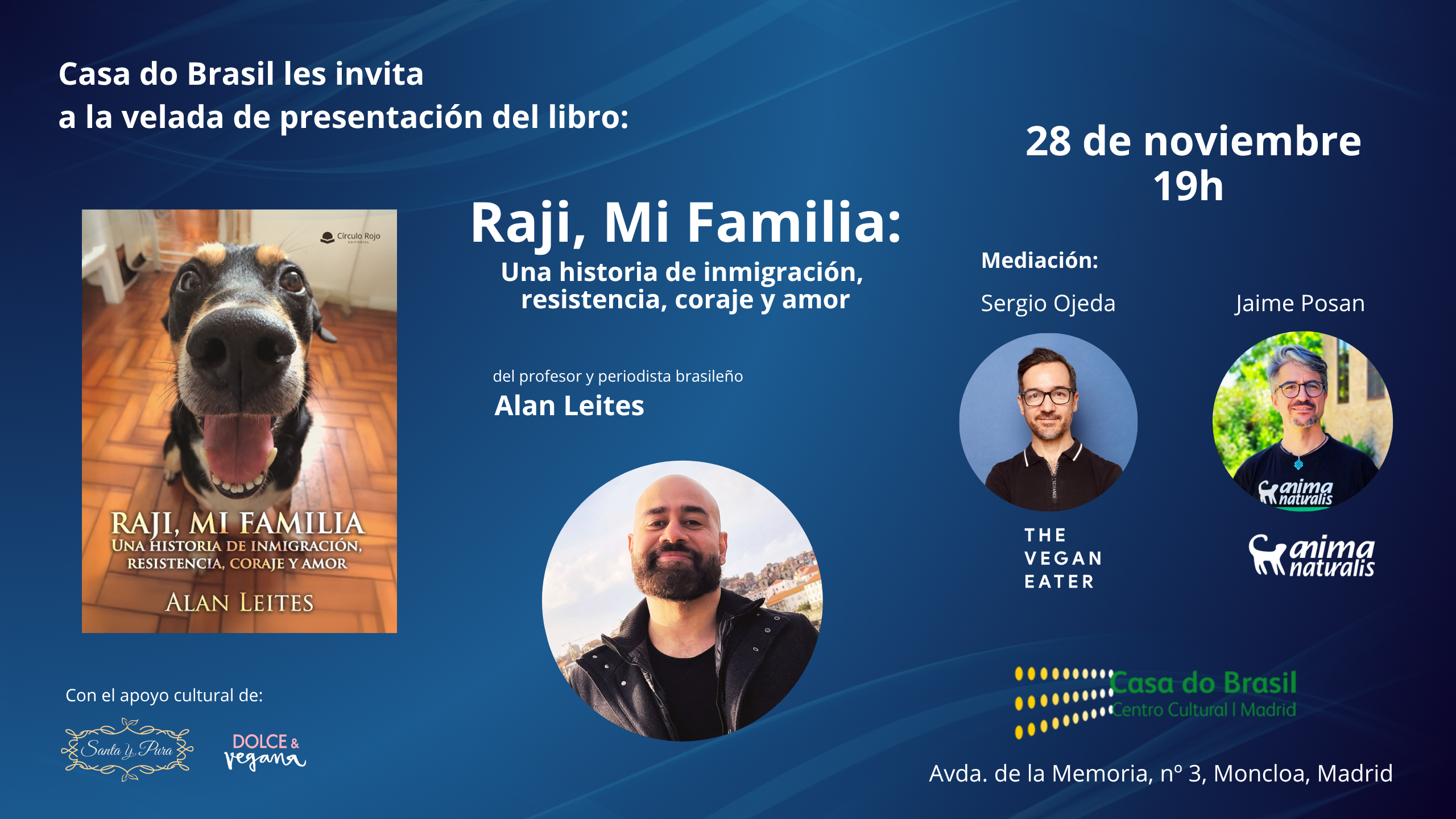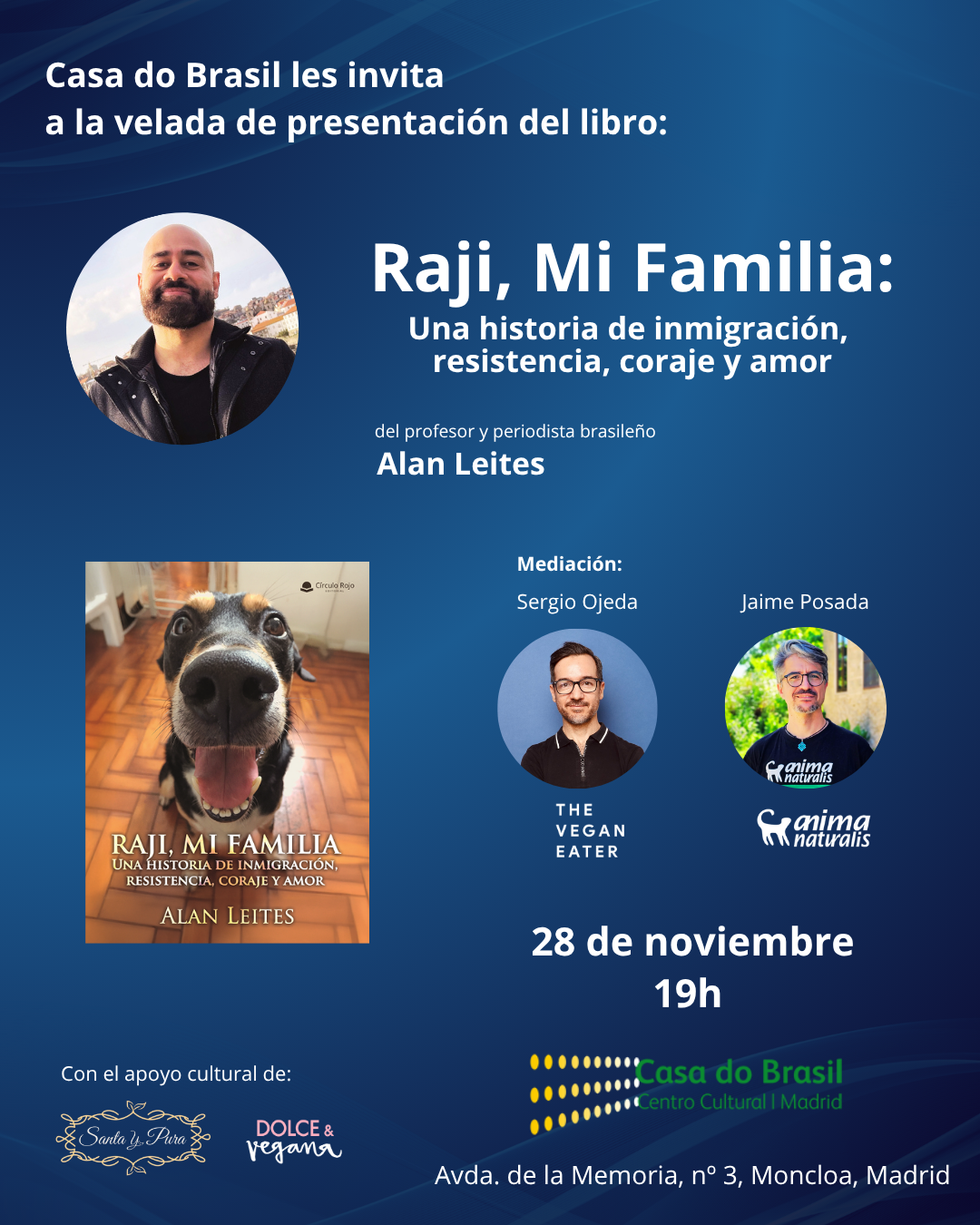 La obra Raji, mi familia: una historia de inmigración, resistencia, coraje y amor, de Alan Leites, destaca no solo por su narrativa íntima y conmovedora, sino también por su capacidad para abordar temas universales a través de una lente personal, como la adopción animal, familia multiespecie, especismo, resiliencia, vida en Brasil, espiritualidad y la defensa de los derechos de los animales. Además, el autor utiliza su pluma para explorar aspectos de la identidad cultural, veganismo, LGTBI+, periferias económicas y sociales, y, sobre todo, las dificultades que conlleva inmigrar mientras entrelaza estas experiencias con la vida cotidiana y las enseñanzas que su hijo peludo de cuatro patas le ofrece.